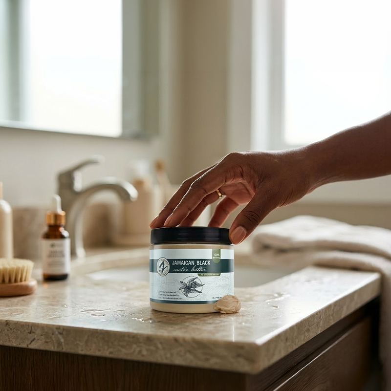 Our Jamaican Black Castor Butter is naturally packed with Ricinoleic Acid and Essential Omega Fatty Acids, which are the building blocks for healthy-looking hair and resilient skin.