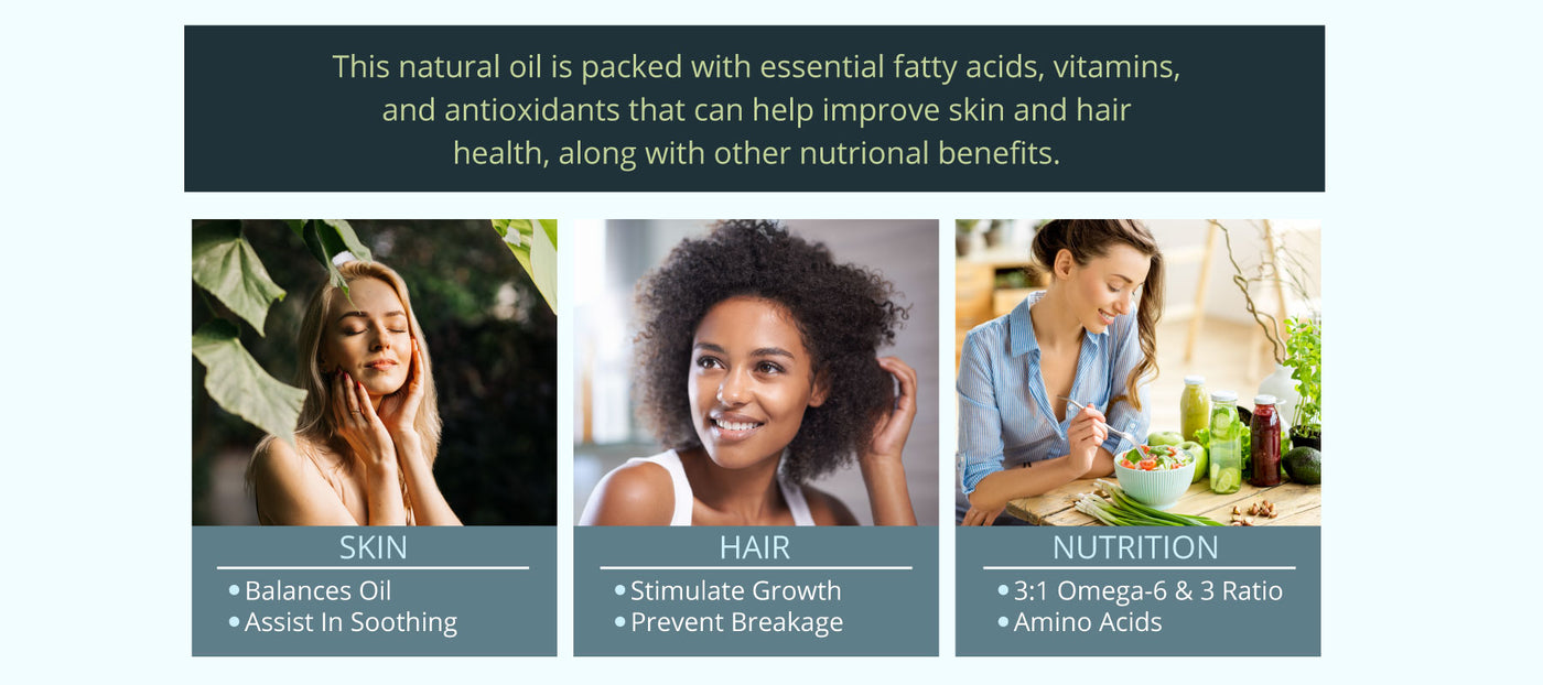 Topical Use: Hemp oil can be applied directly to the hair and skin. Spot allergy testing is recommended.