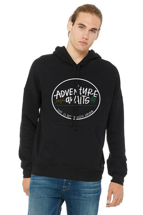 Embark on your next adventure in comfort and style with our 'Adventure Awaits' Ultra-Soft Black Pullover Sweatshirt. Crafted from plush sponge fleece fabric, this remarkably soft unisex pullover hoodie is perfect for daily wear and year-round layering.